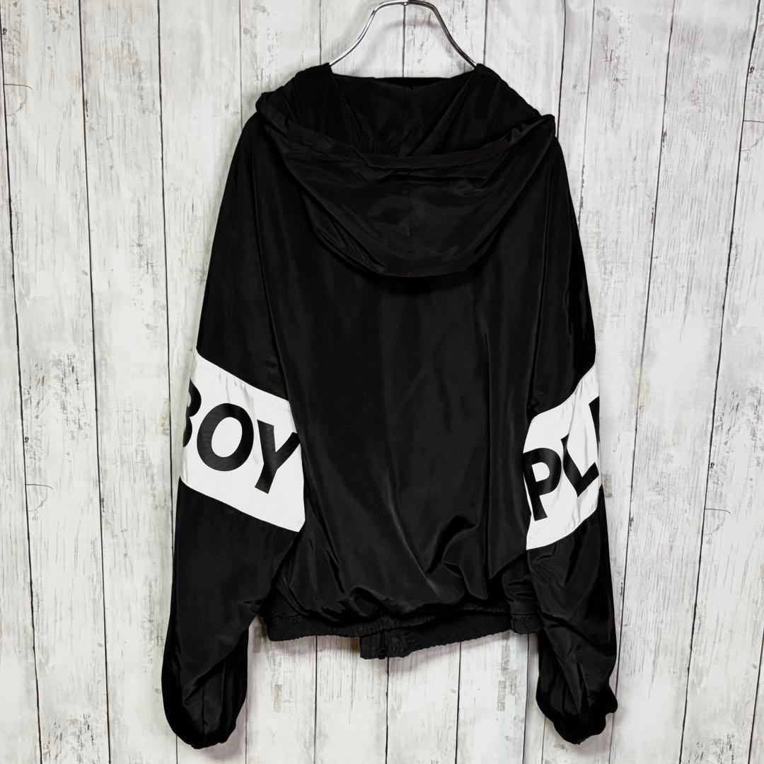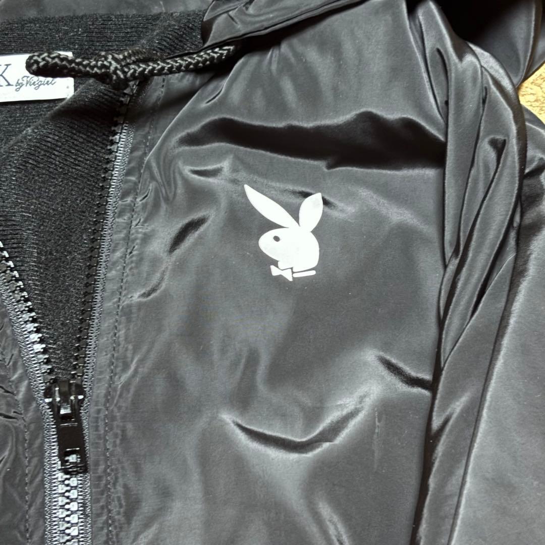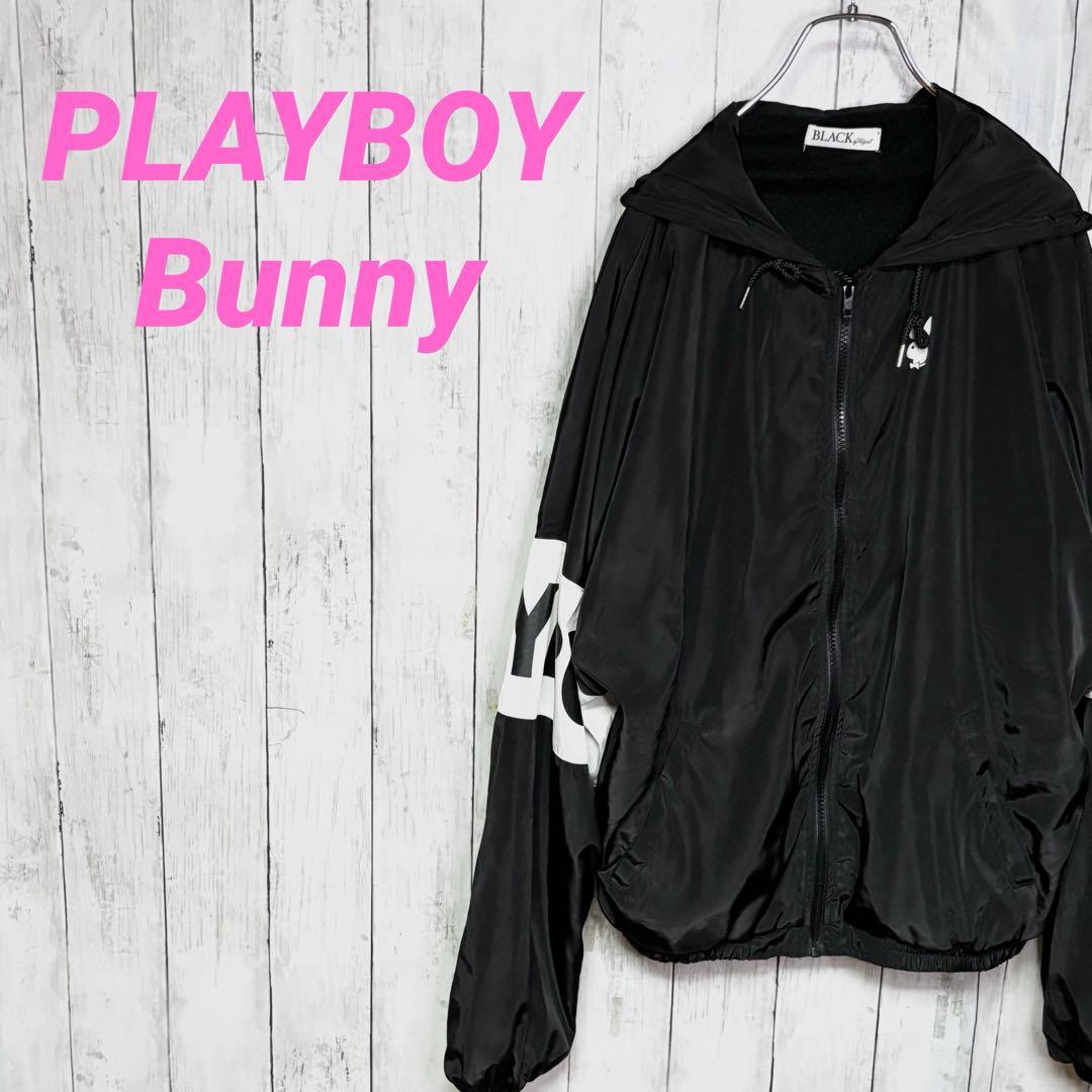 プレイボーイ フード付き ナイロン風ジャケット ゆったりシルエット ロゴマーク