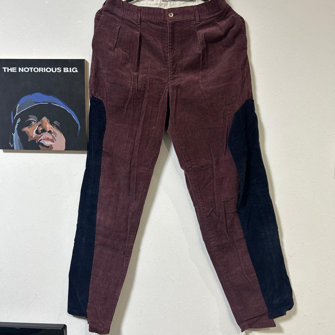 ボルドー ネイビー コーデュロイパンツ ハンドメイドズボン