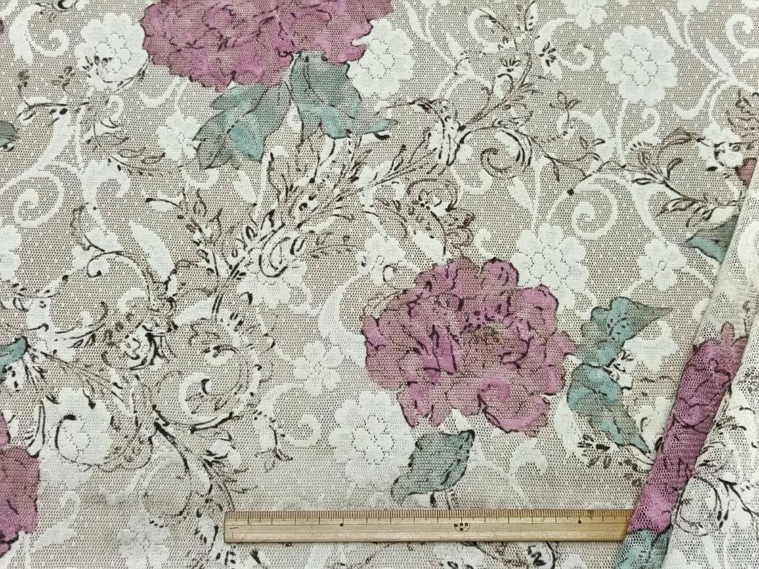 A352・ポリエステル100%・チュールニット・花柄・キナリ系2m