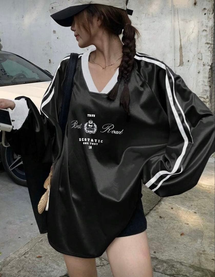 光沢 ブラック Vネック 長袖 トップス y2k 韓国 秋服 ストリート
