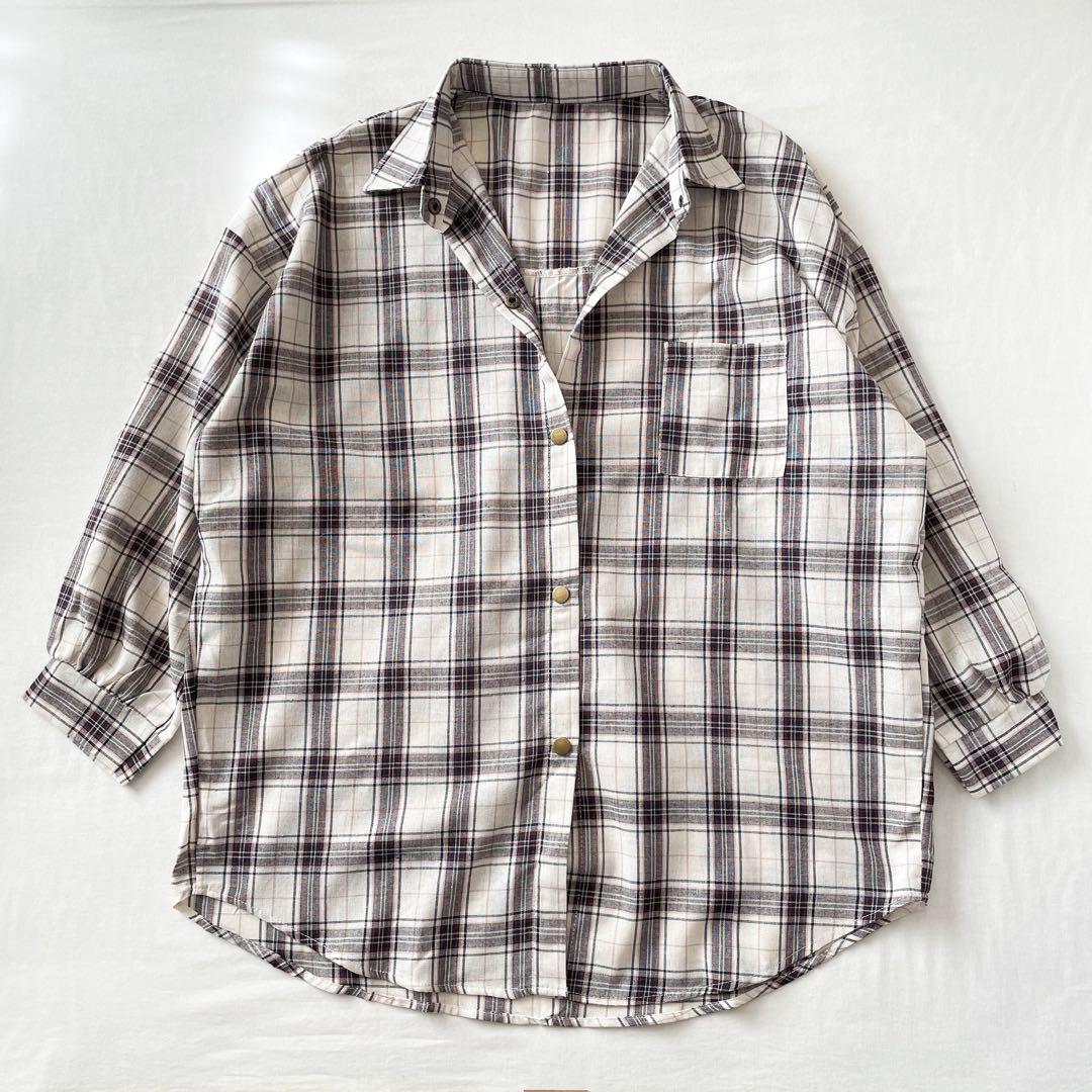 新品未使用◆SHEINタータンチェックドロップショルダーオーバーサイズシャツ