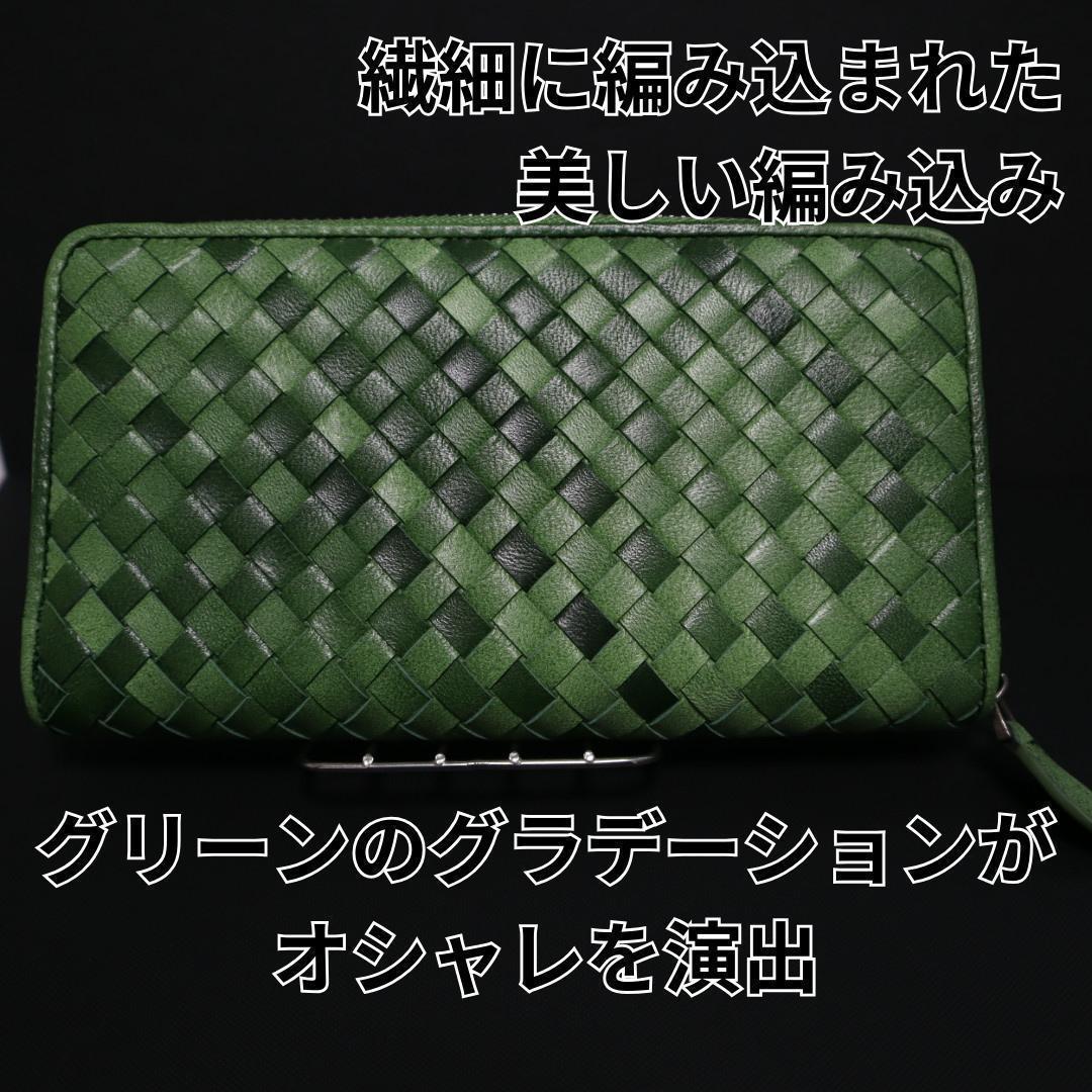 長財布 本革 イントレチャート ラウンドファスナー グリーン グラデーション人気
