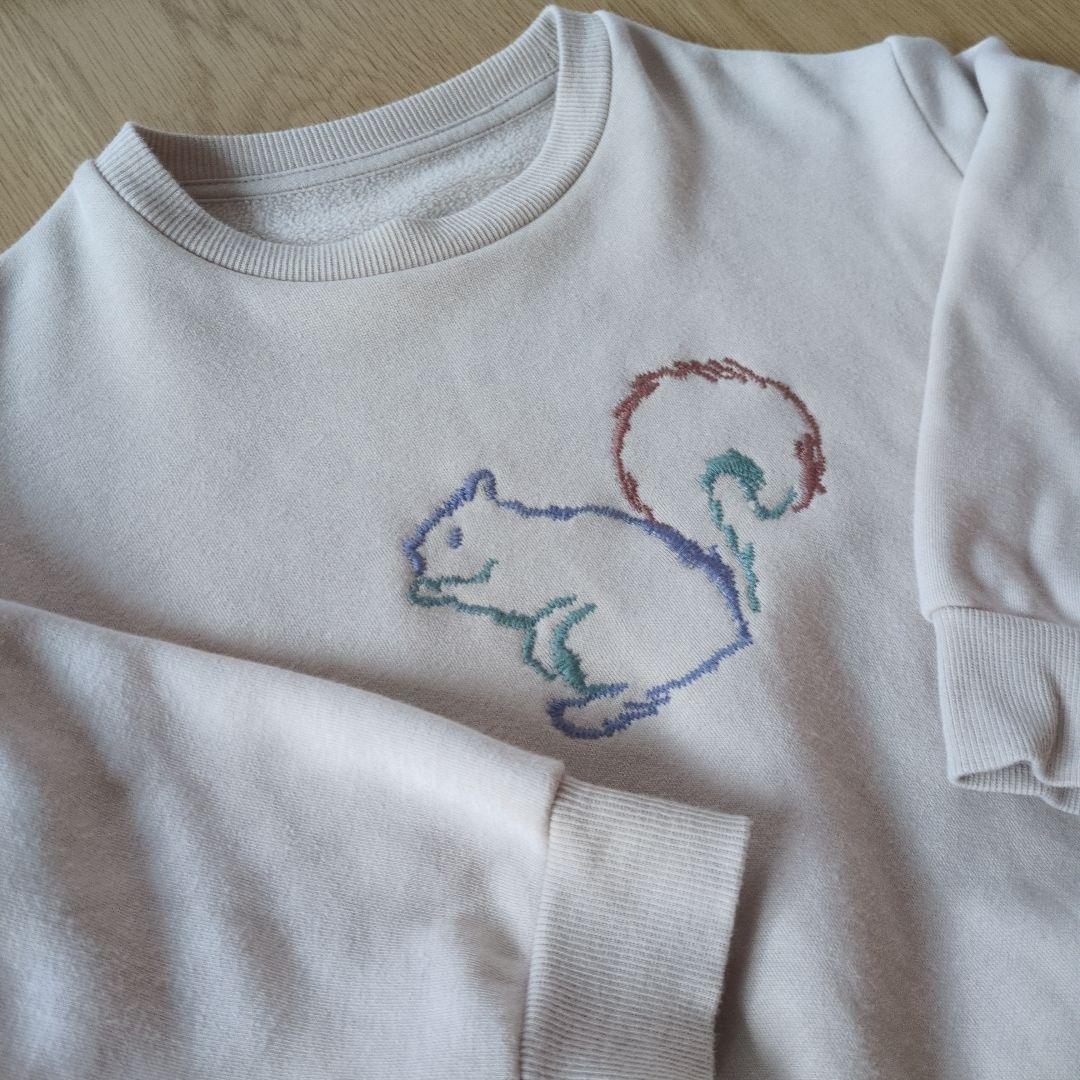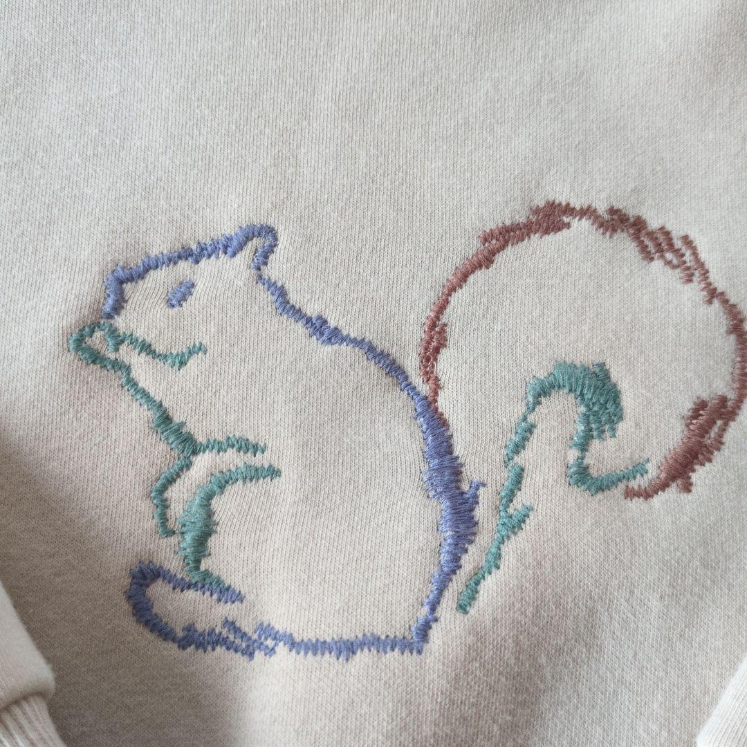 ユニクロ リス刺繍 トレーナー ベージュ 裏起毛 110