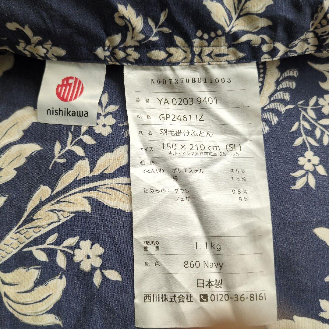西川 羽毛掛け布団 ダウン95% シングルロング150x210cm