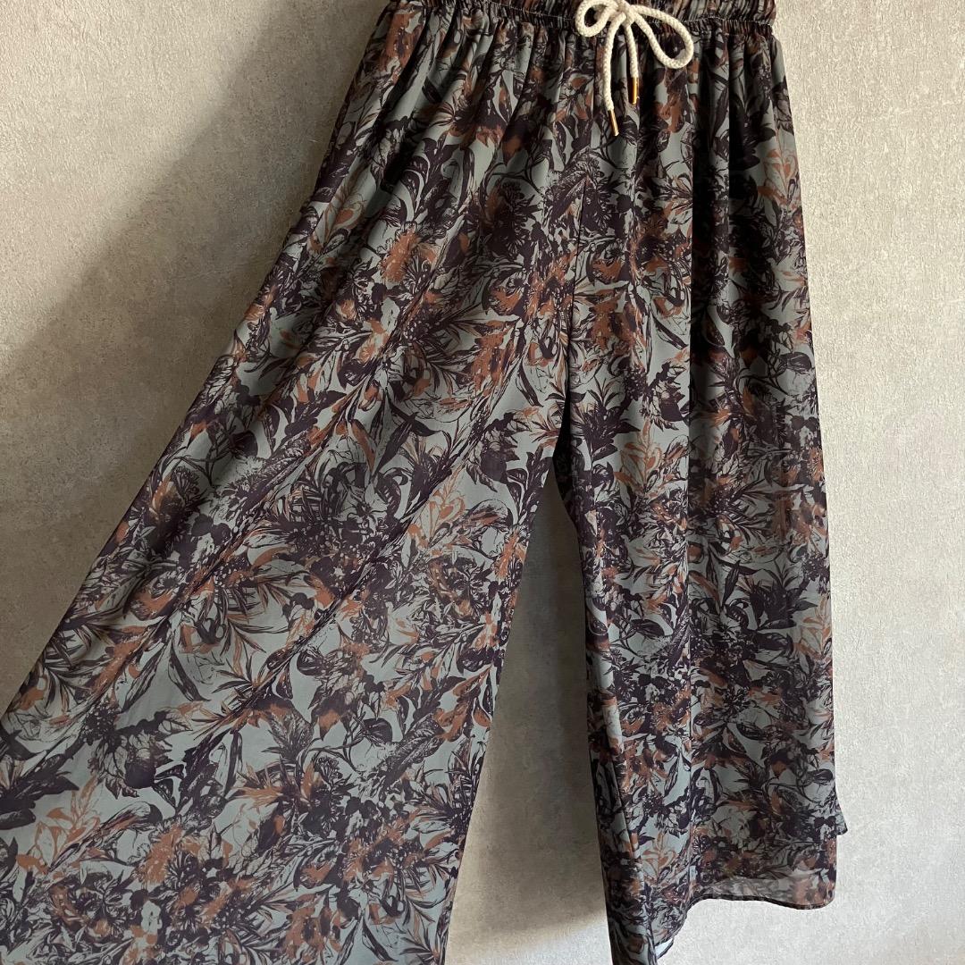 美品 ヤマダヤ Aga ボタニカルシアーワイドパンツ チャコールグレー