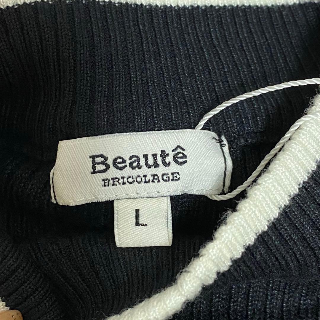 黒 リブ編み 長袖 セーター L パイピング ニット ブラック モノクロ