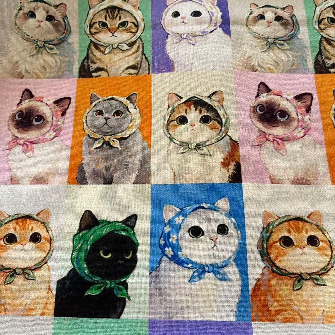 ラスト ちょっと長め猫柄ハギレ②110×56