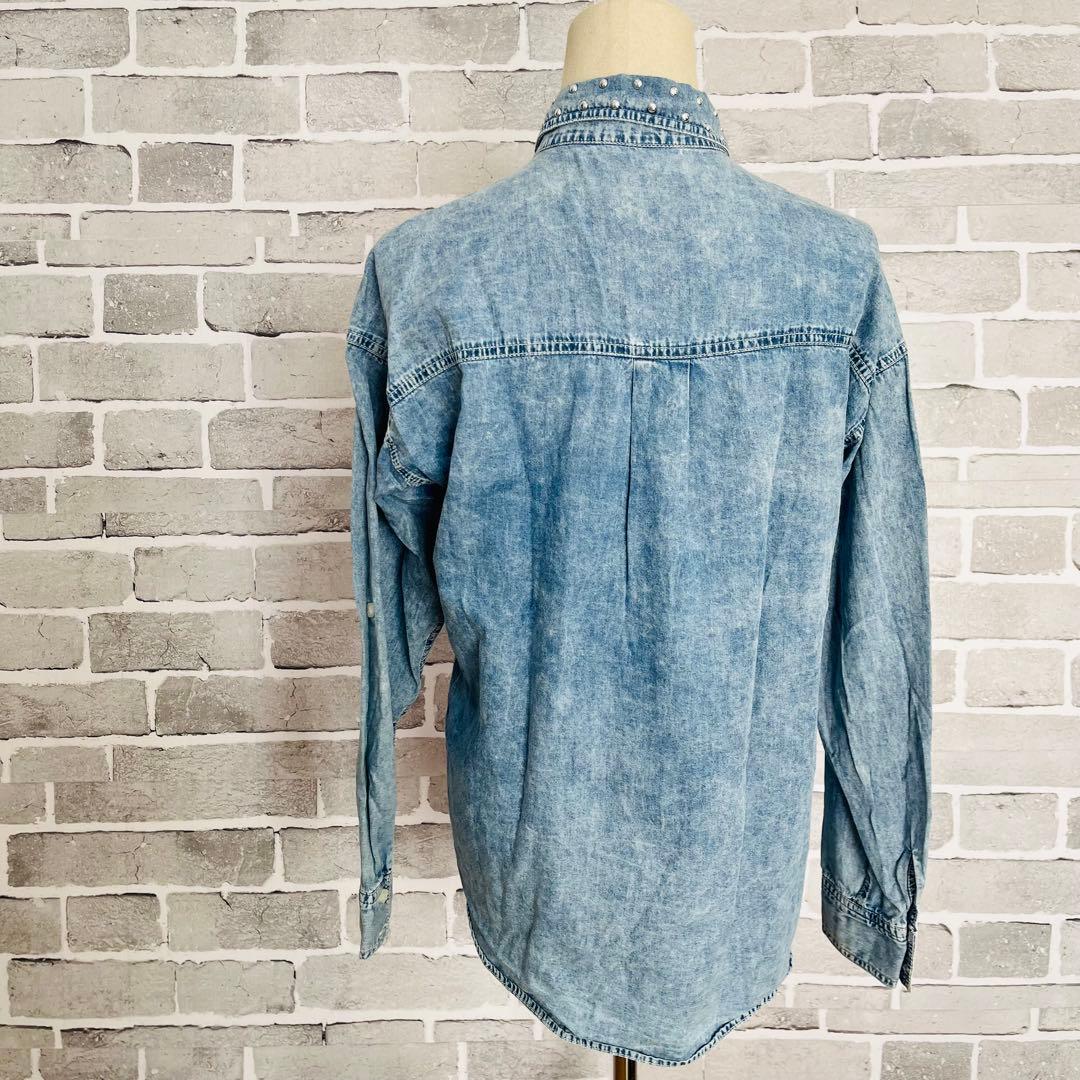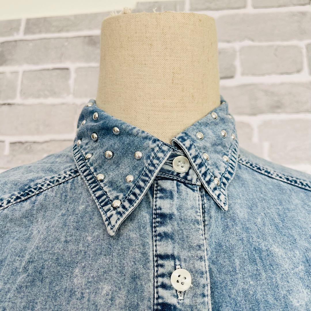 イングINGNI スタッズ装飾ケミカルウォッシュ デニムシャツ F B487