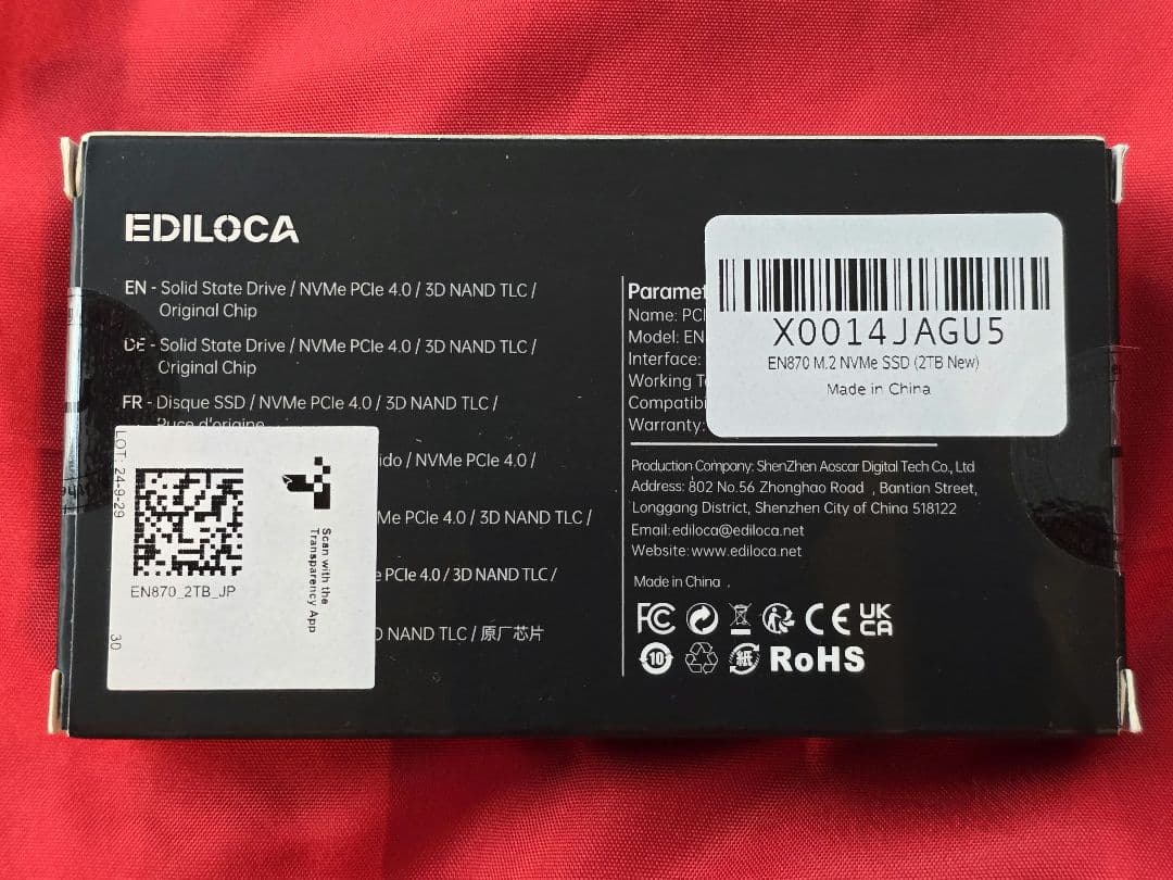 新品 2TB SDD EDILOCA EN870 PCIe 4.0 NVMe
