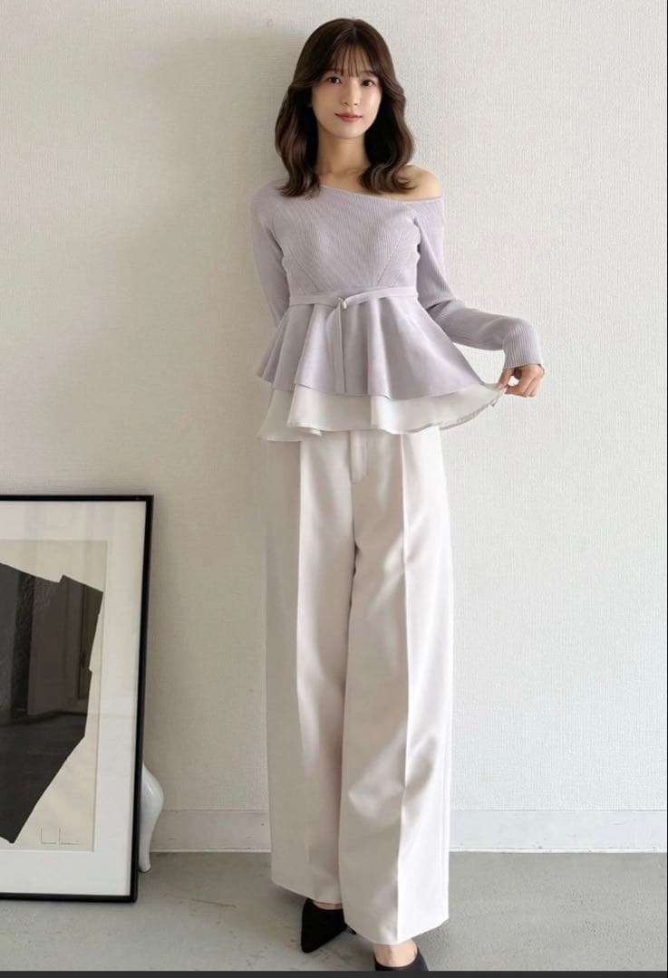 マーキュリーデュオ 異素材ドッキングペプラムニット ラベンダー