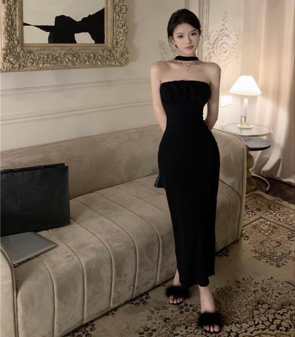 【残り1点‼️】バックリボン ホルターネックドレス ロング 背中見せ ブラック S
