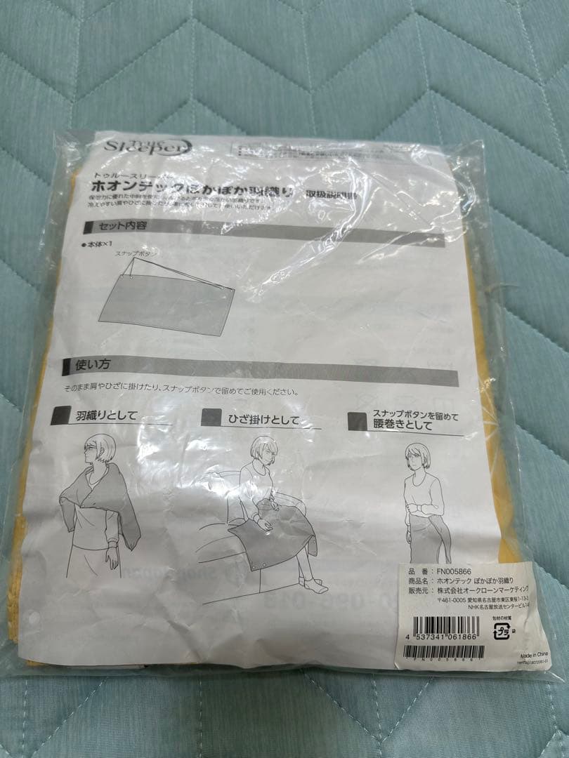 ホオンテックぽかぽか羽織り 膝掛け ミニ布団 イエロー 幾何学模様