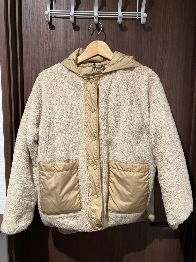 Samansa Mos2 blue フード付リバーシブルボアジャケット