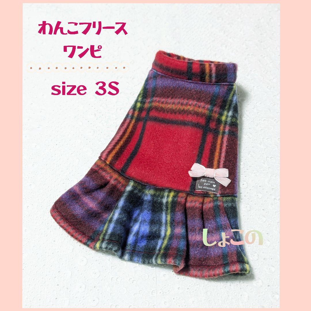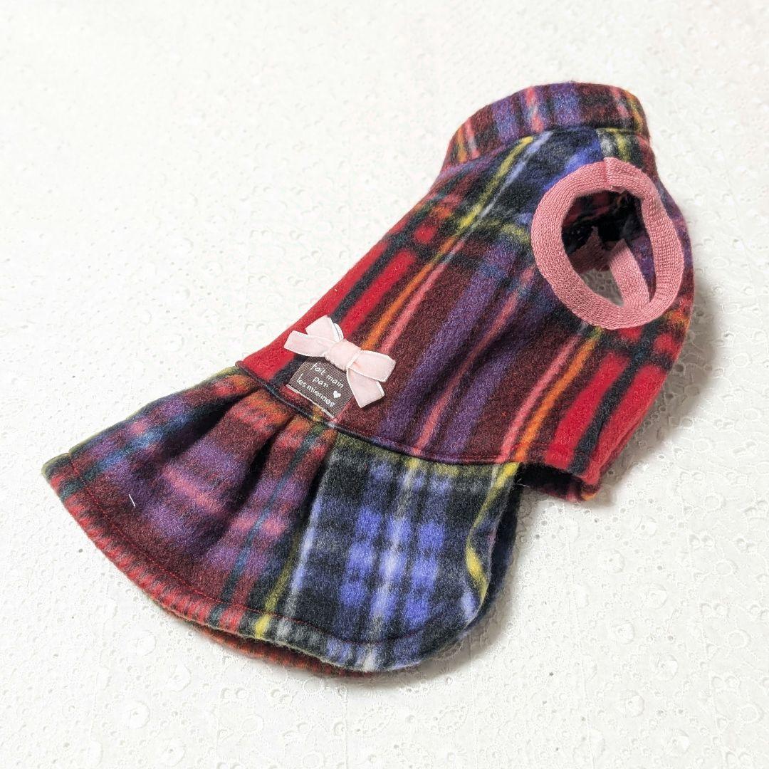 わんこフリースワンピ レッド×パープル系チェック柄 size 3S