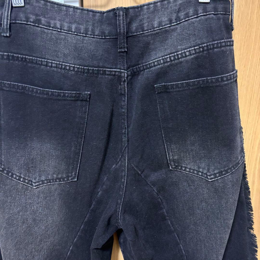 ストレートジーンズ フリンジ加工 ダメージ