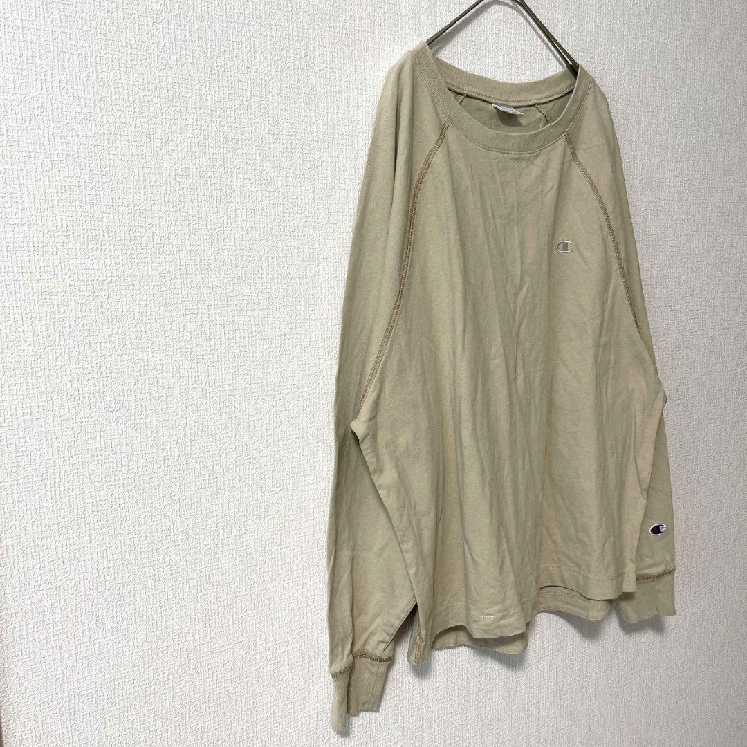 【チャンピオン】長袖カットソー フリーサイズ カーキ 綿100% ロゴ刺繍 秋冬