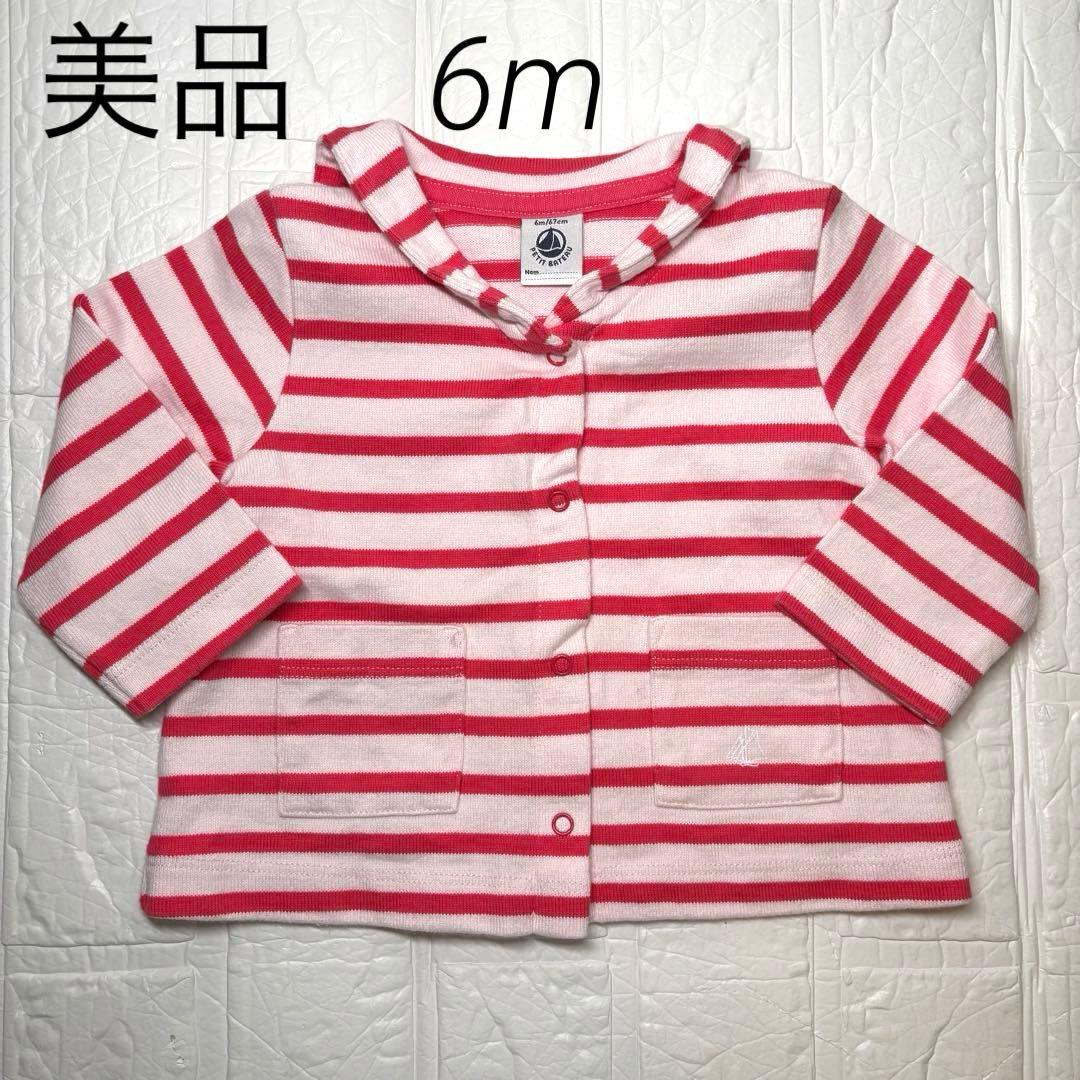 【美品】プチバトー ピンクストライプ 長袖トップス カーディガン 6m/67cm