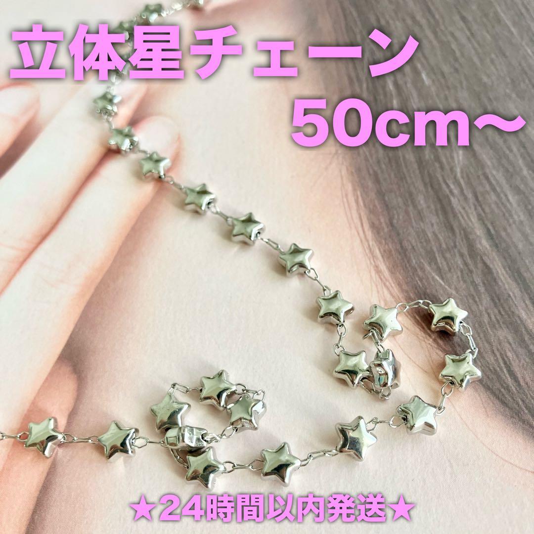 ★24時間以内発送★【50cm】立体星チェーンシルバー(251121-04)