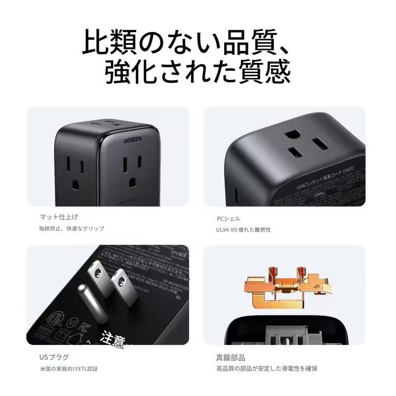 UGREEN 20Wコンセント 電源タップ 3A1C+4AC