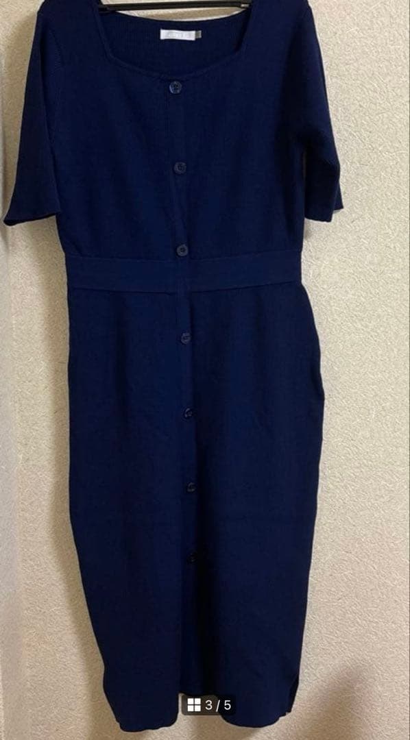 overE 5分袖タイト風フロントボタンリブニットワンピース 102 華紺