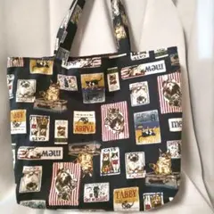 ヴィンテージ風ねこ柄のトートバッグ
