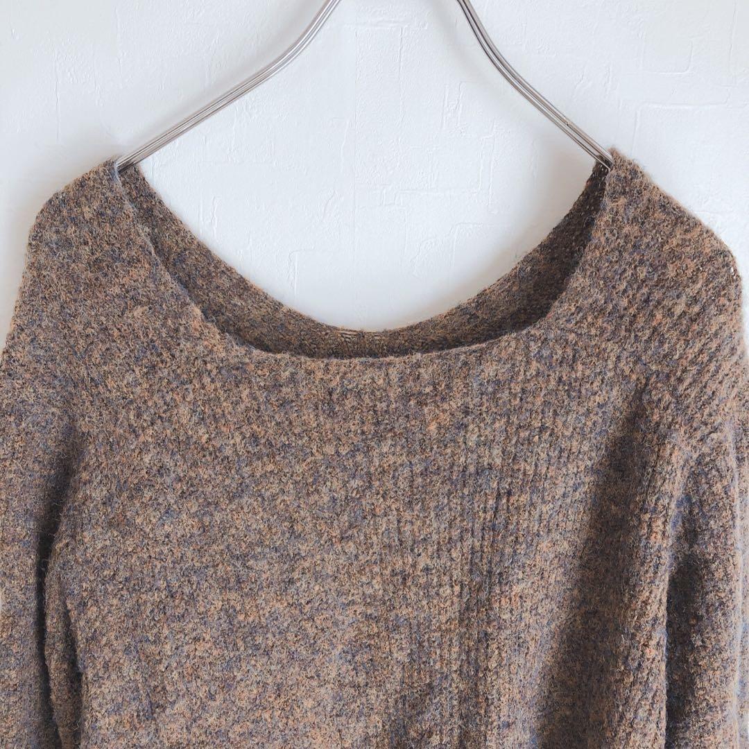 レイカズン 長袖セーター ニット Vネック ゆったり 毛混 ブラウン L