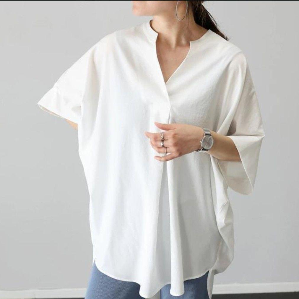 ラスト 新品 エステルローンスキッパードルマンシャツ ブラウス ホワイト 半袖