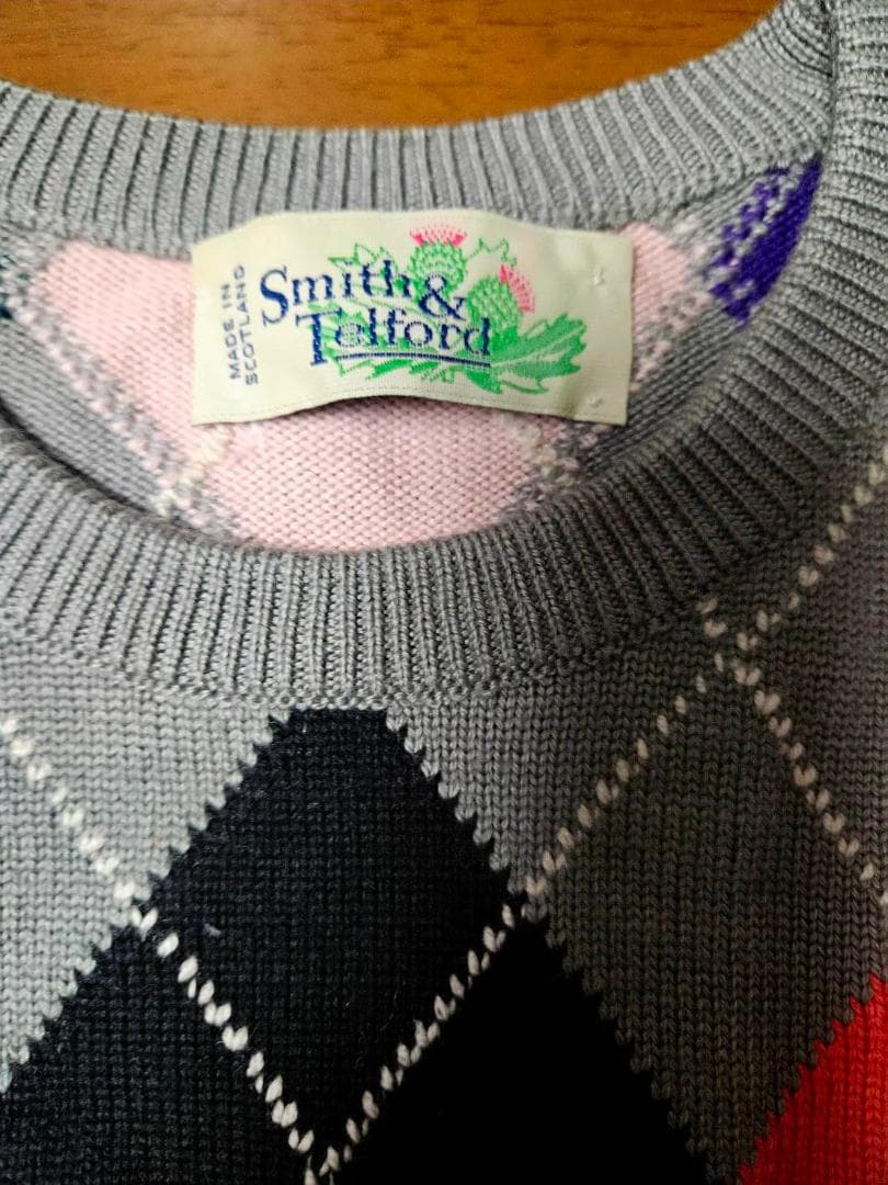 送料無料/美品スコットランド製マルチカラーGOLFニットセーター