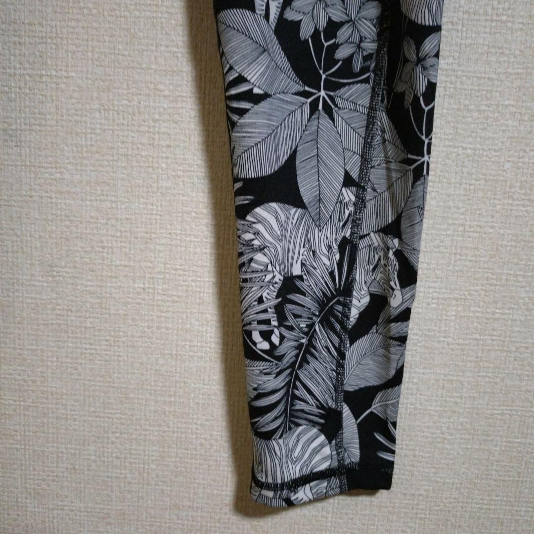 DKNY【M】ボタニカル柄 スポーツ スパッツ 白黒