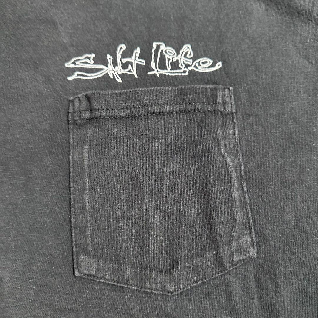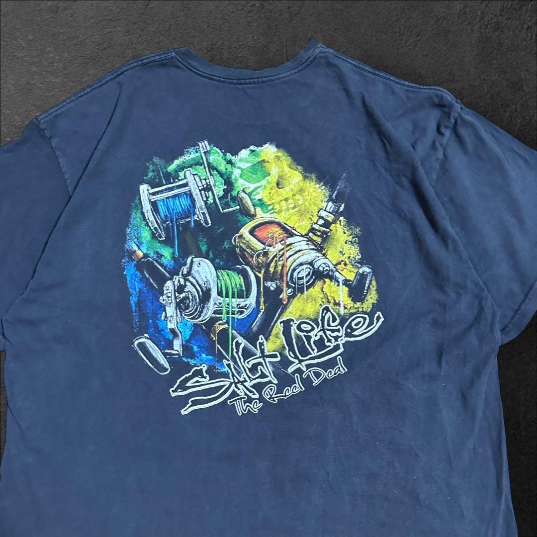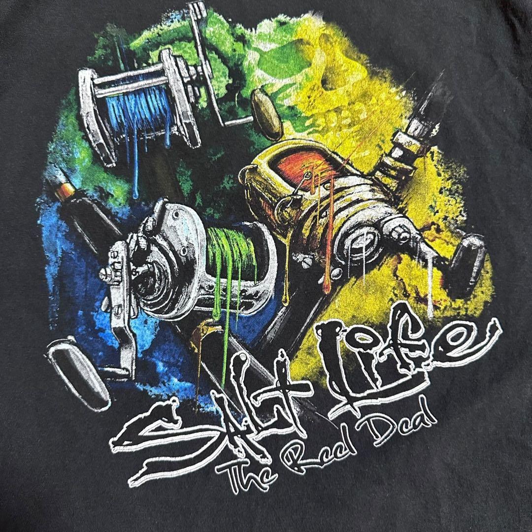 SALT Life 00's PrintTeeフィッシング リールフェード黒古着