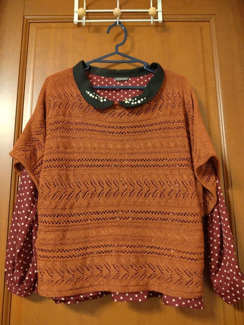 【まとめ売り4点】赤 (ワイン系)ドット柄 長袖ブラウス他3点