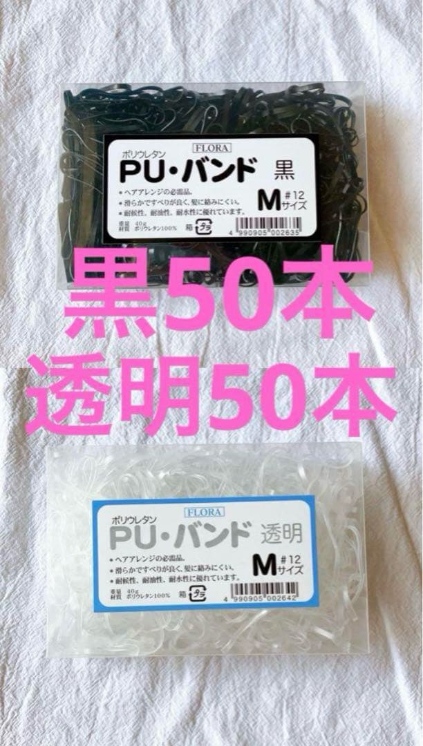 FLORA フローラ ポリウレタン PUバンド 黒50本 透明50本