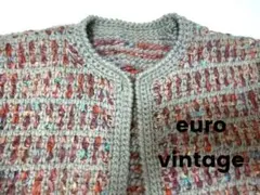 7AS4アニマル柄 デザインニット 個性的 派手色 総柄 紫 古着used