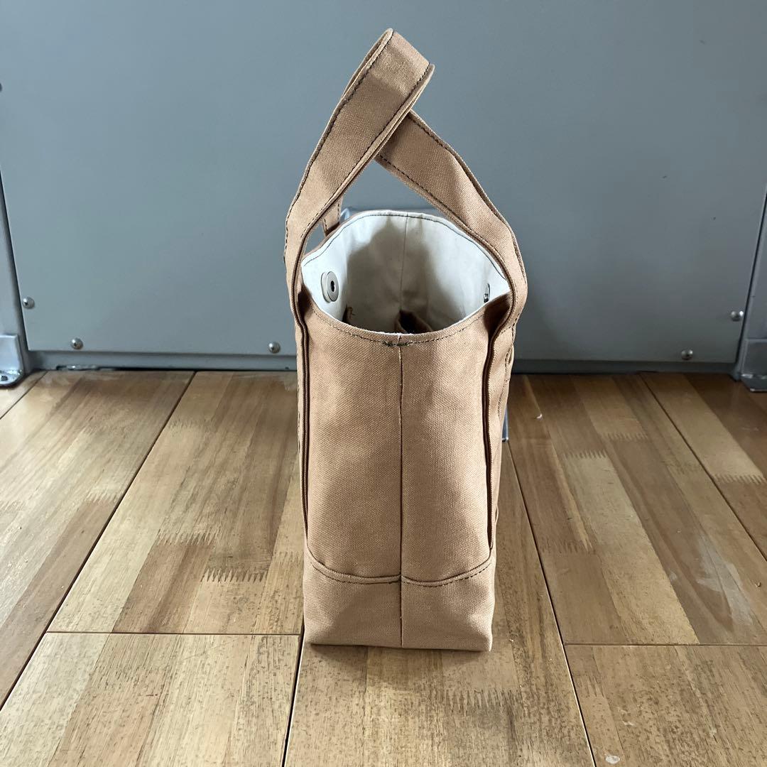 帆布ミニトートバッグ カフェオレ ペットボトルホルダー付き おさんぽバッグ