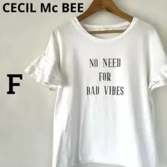 セシルマクビー フリル袖 半袖 メッセージプリント Tシャツ 白