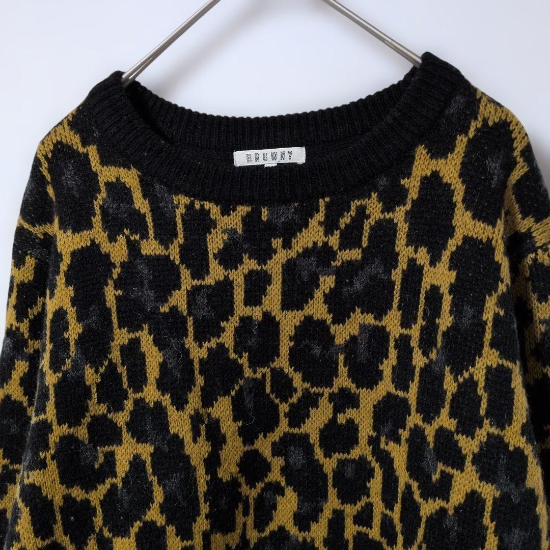 BROWNY【М】ニット 長袖 レオパード 冬 オークル ブラック
