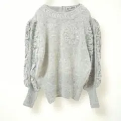 サンホー グレー ボリュームスリーブ ニット 刺繍