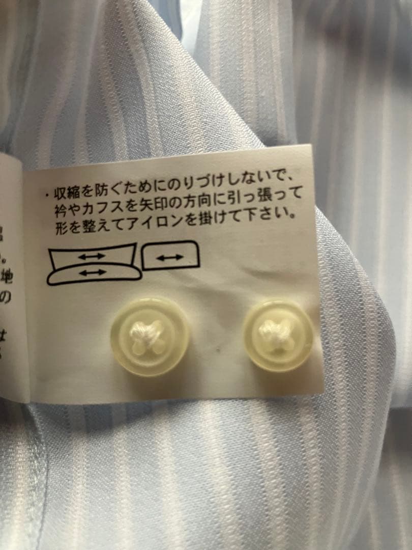 薄ブルー系ストライプ長袖ボタンダウンシャツ 綿100%LL(43)88新品未着用