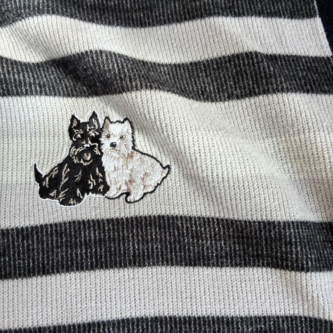 ストライプデザイン刺繍長袖 ブラック&ホワイトゴルフ