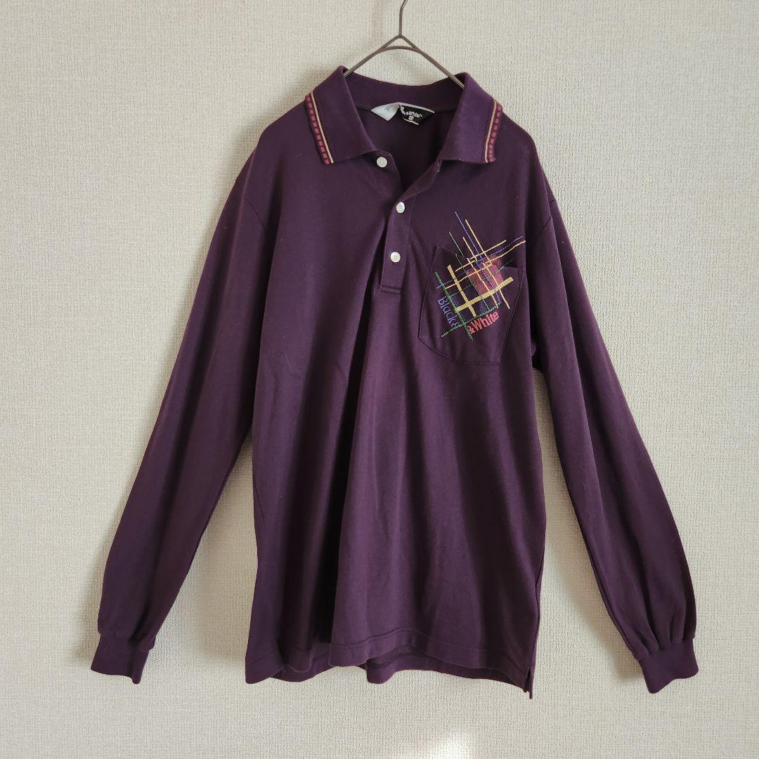 【稀少】ゴルフウェア/BLACK&White/長袖ポロシャツ/メンズM