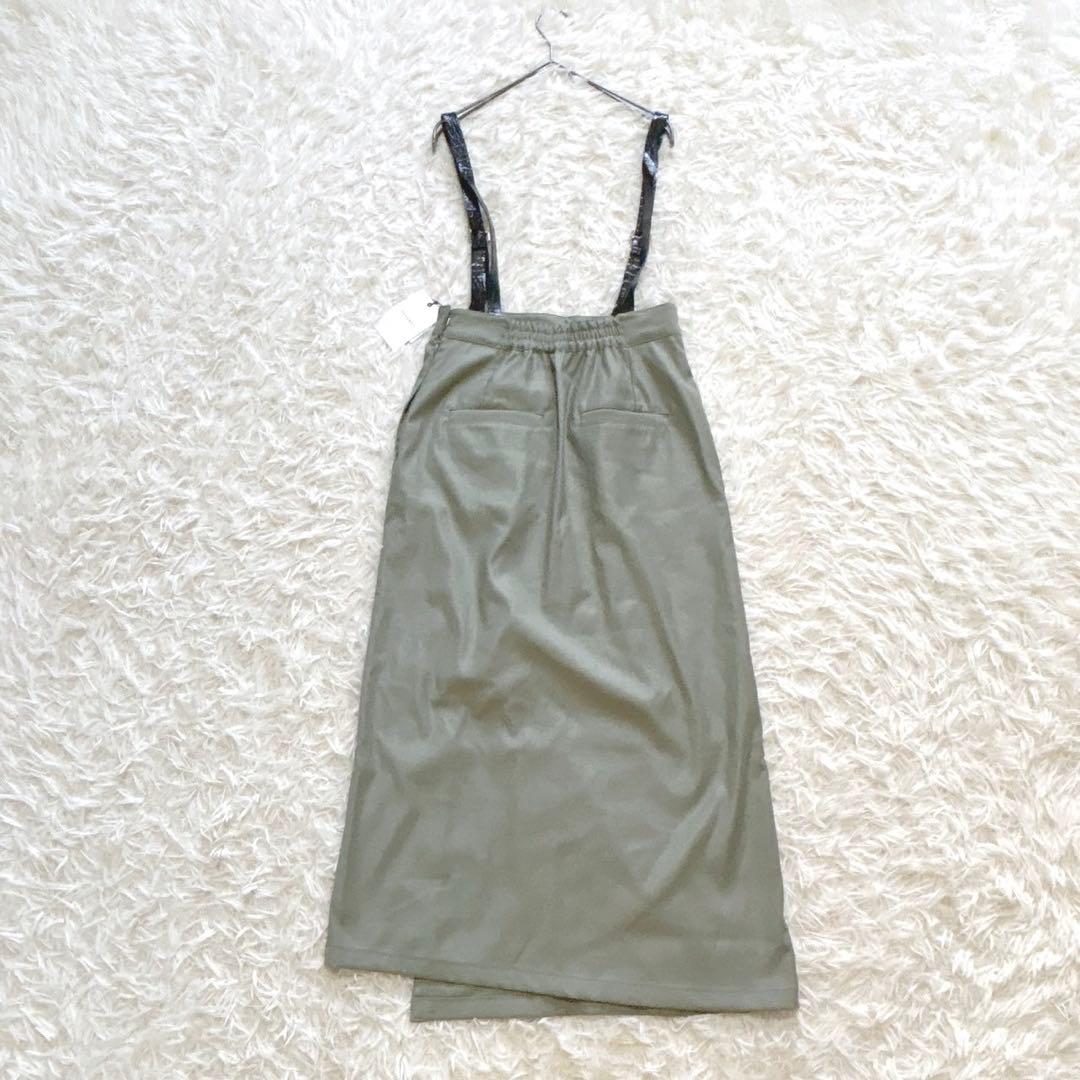 Y4979【ページボーイ】新品✨ロングスカート サロペット カーキ系 S