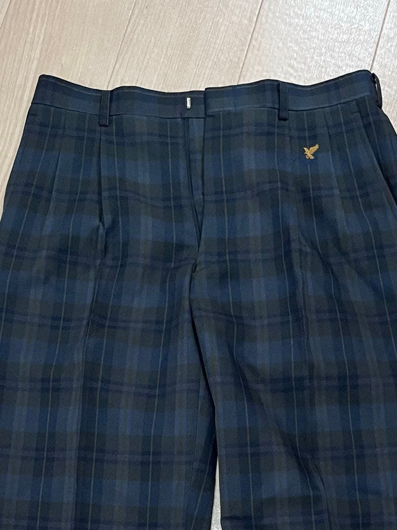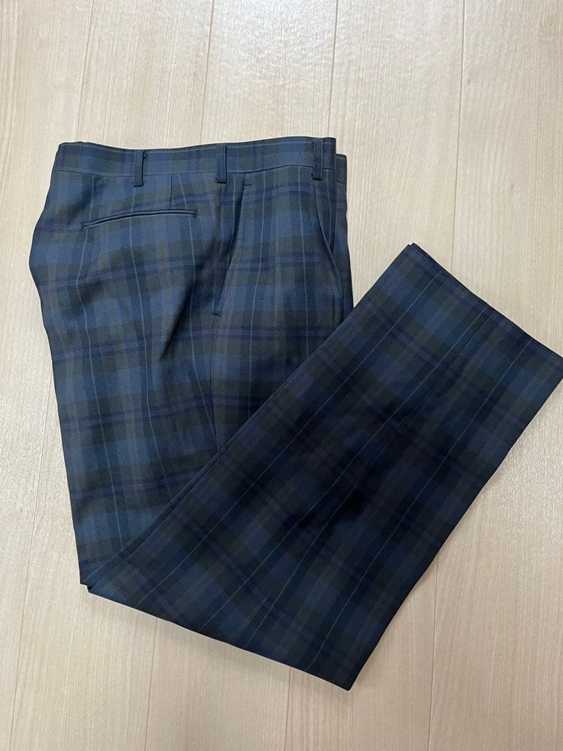 日本製 美品 メンズスラックス チェック柄 センタープレス