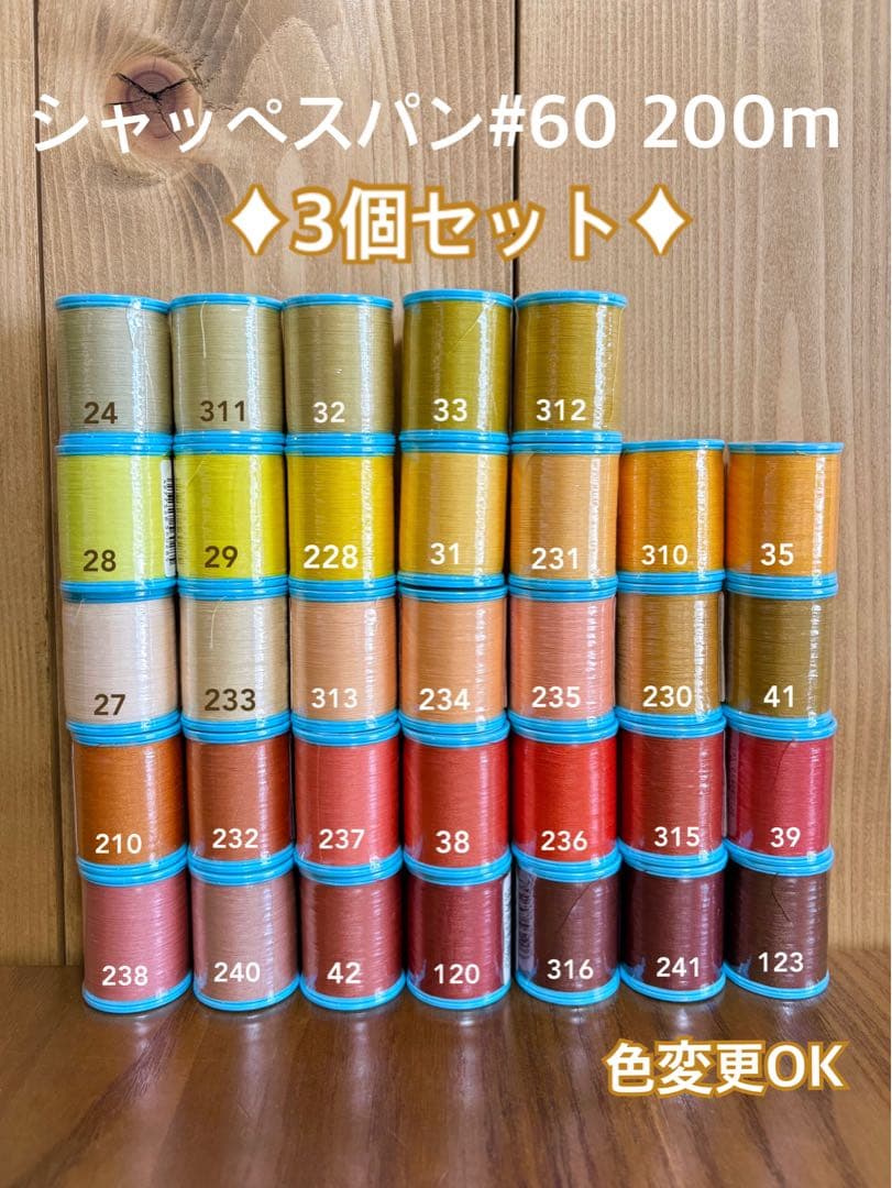 ミシン糸 シャッペスパン#60 200m 3個(黒、白、生成)色変更ok