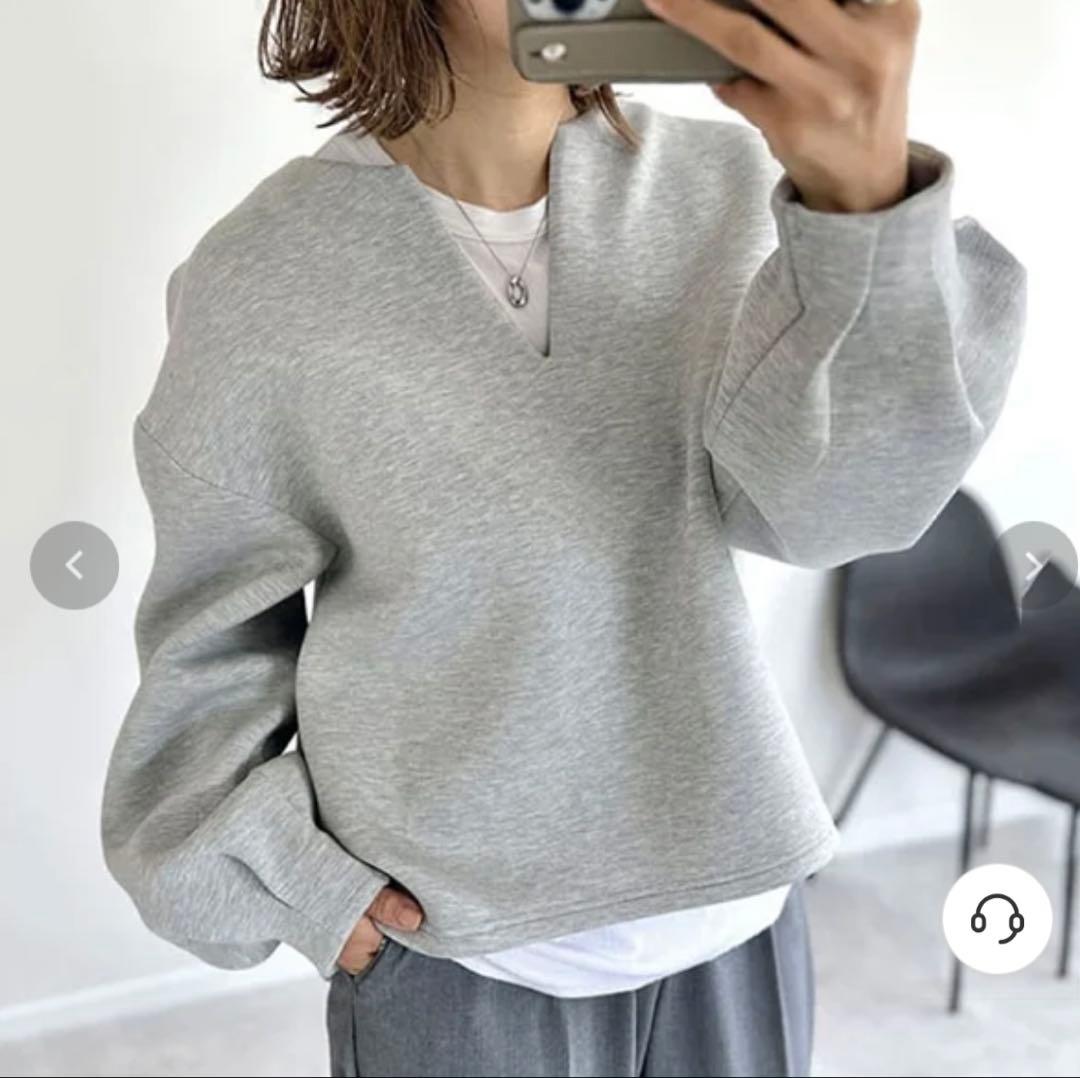 グレー Vネック バルーンスリーブ スウェット