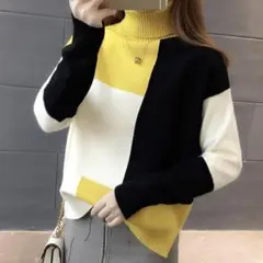 ⭐️新品未着用⭐️配色 セーター ハイネック ニット マルチカラー Fサイズ