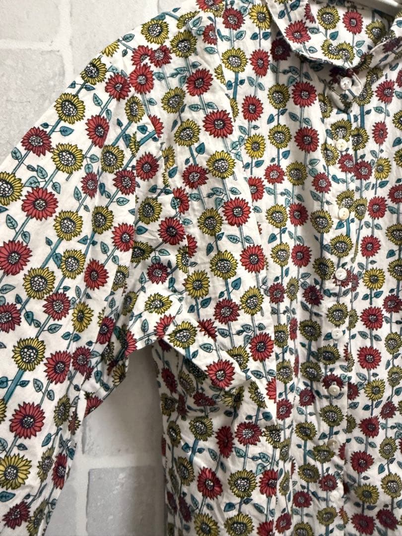 fu-dueka: エーカ 総柄シャツ 長袖シャツ 花柄 ひまわり綿100%