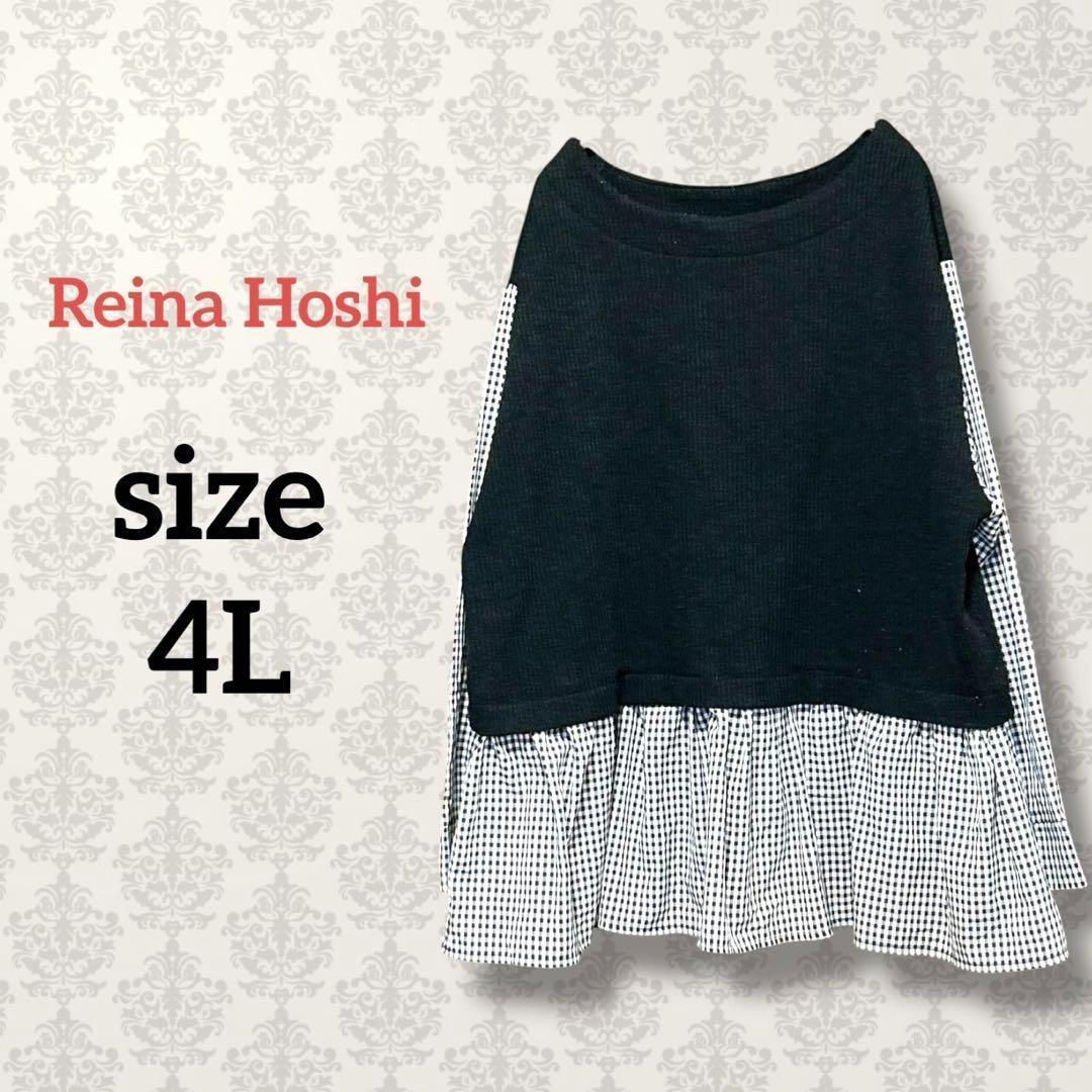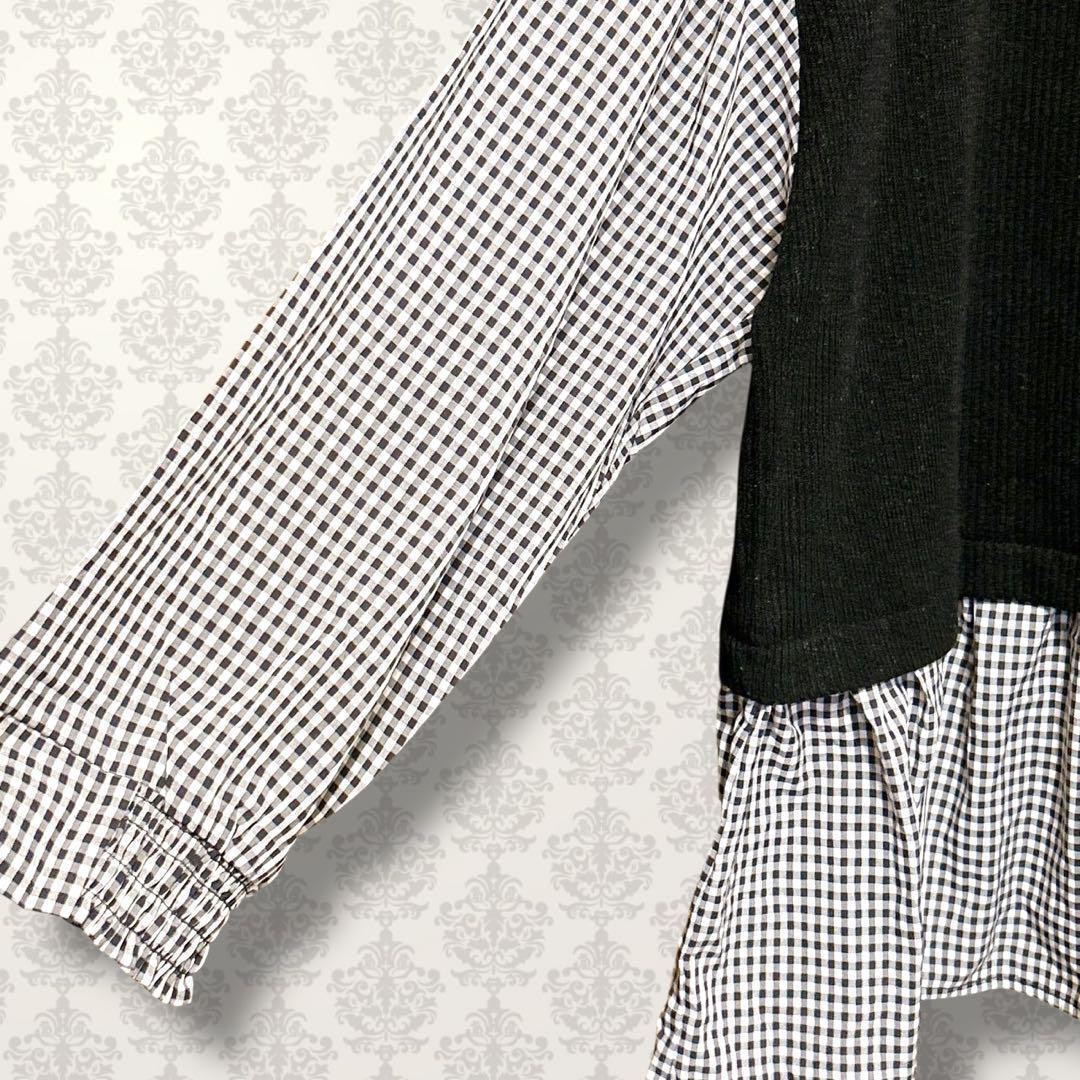 ホシレイナ【4L】ドッキングリブニットブラウス 大きいサイズ ギンガムチェック
