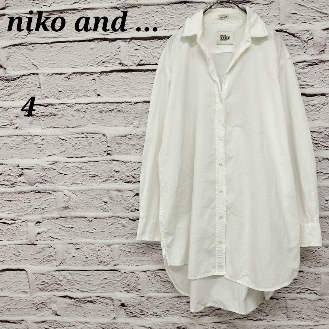 ニコアンド【4】 長袖ロングシャツ チュニック ラウンドヘム コットン ホワイト