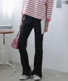 CPCM リブ フレアパンツ イージーパンツ 黒 フリーサイズ