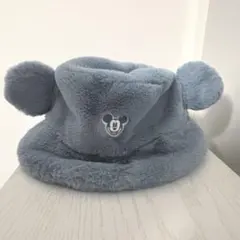 【美品】ミッキー耳付きふわふわバケットハット(ブルー)